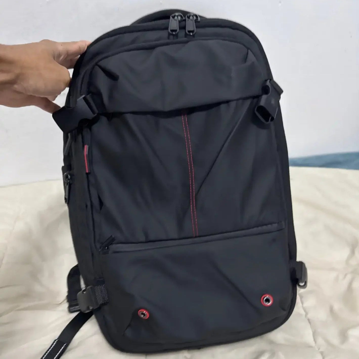 Repussamme on kannettavan tietokoneen osasto, järjestystaskut, kenkäosasto ja ammattimainen, tyylikäs ulkonäkö, joka sopii työmatkoille. Kompressio-ominaisuus mahdollistaa 7–14 päivän työvaatteiden pakkaamisen käsimatkatavarakokoon, välttäen ruumaan menevien laukkujen maksut ja viivästykset.